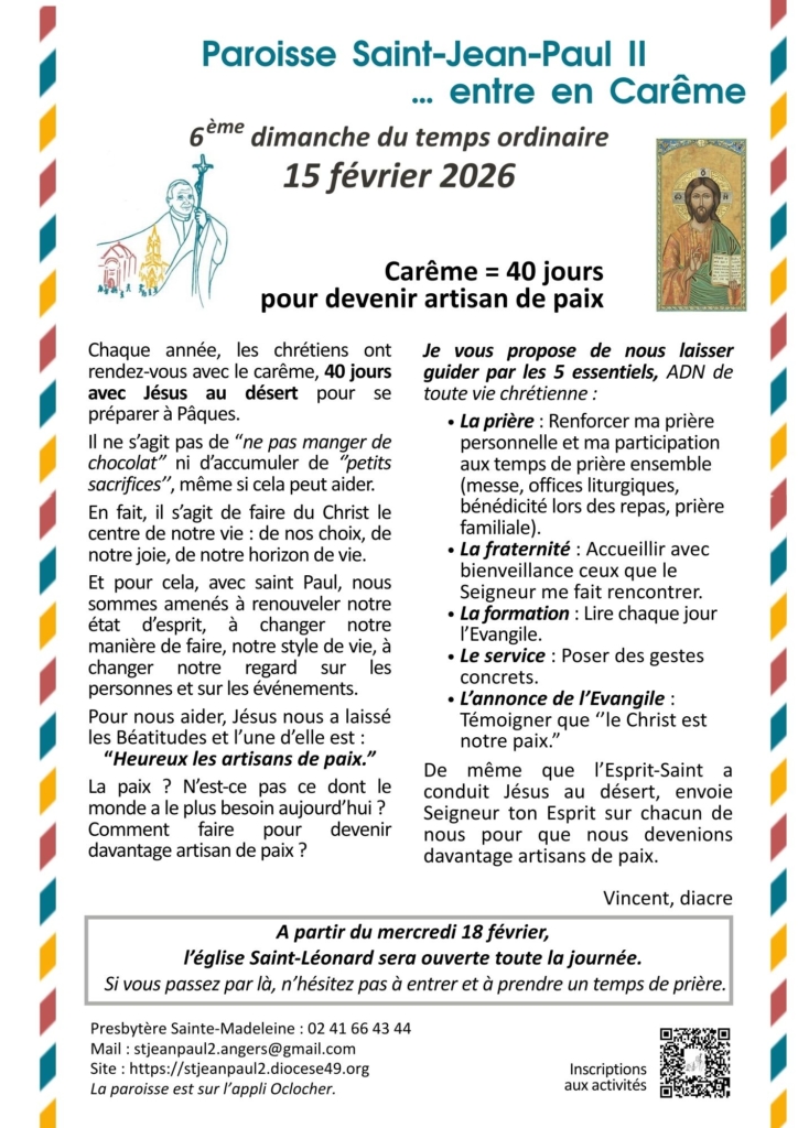 Accueil > Actualités > Carême = 40 jours pour devenir artisan de paix