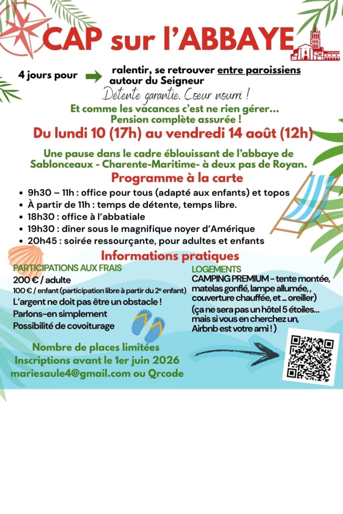 Accueil > Agenda > Vacances en paroisse à l’abbaye de Sablonceaux